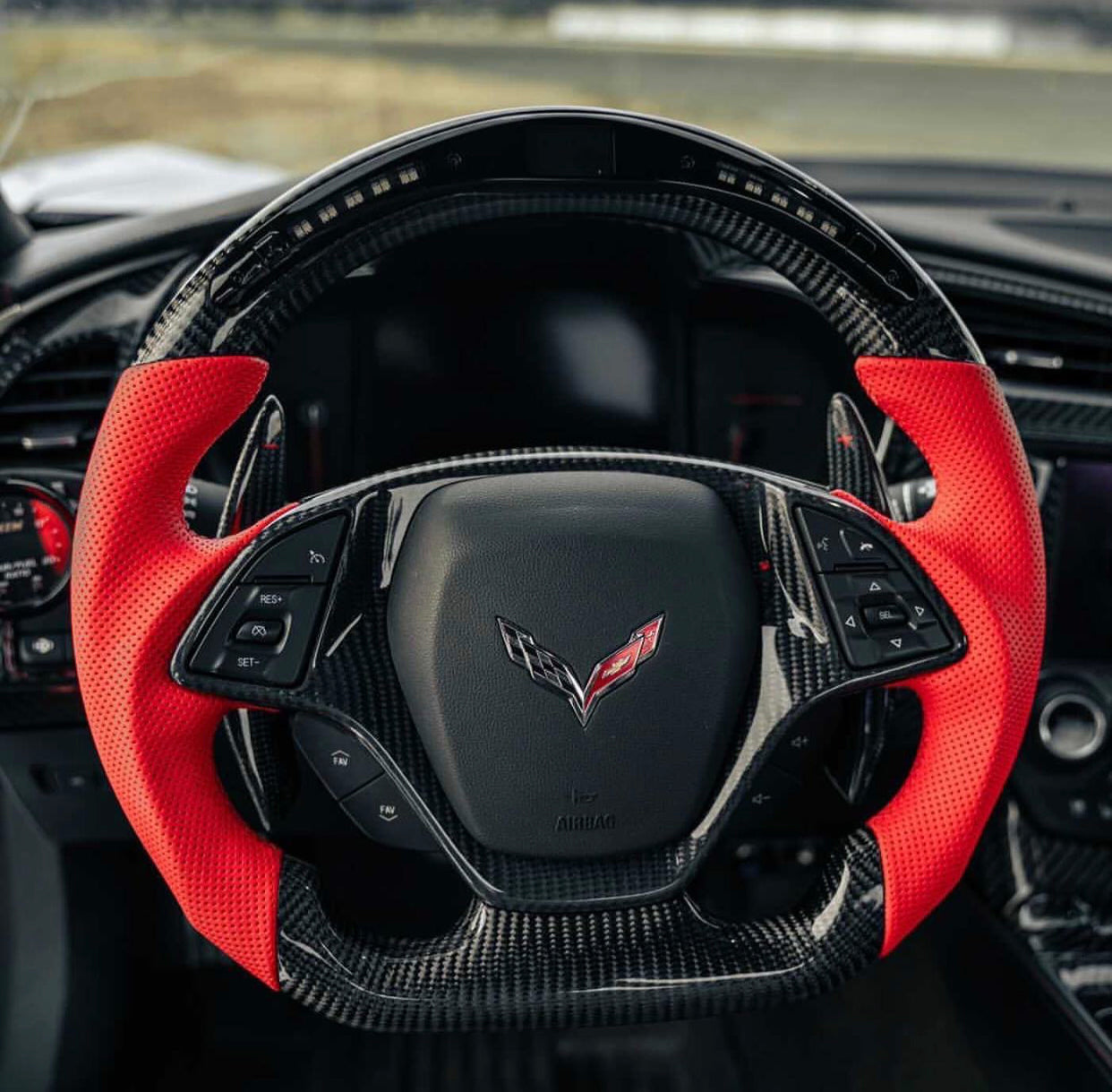Elevate your driving experience with a premium C7 Corvette Steering Wheel, meticulously designed for Chevrolet Corvette models spanning from 2014 to 2019. Transform the interior of your C7 Corvette by upgrading to a sophisticated Carbon Fiber Steering Wheel for Corvette C7. This upgrade not only enhances the aesthetics but also complements the high-performance and sporty character of your vehicle.